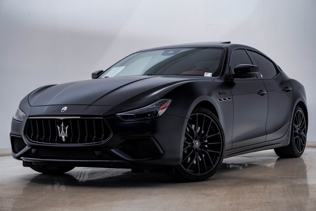 2022 Maserati Ghibli Modena Q4 in Fuoriserie-Nero Luce Black wrapped in Stealth PPF and Red Interior! Loaded with Interior Carbon, Sportivo, Nerissimo Carbon, and Cold weather Packs as well as 21" Gloss Black Wheels, Ventilated Seats, and Much More!