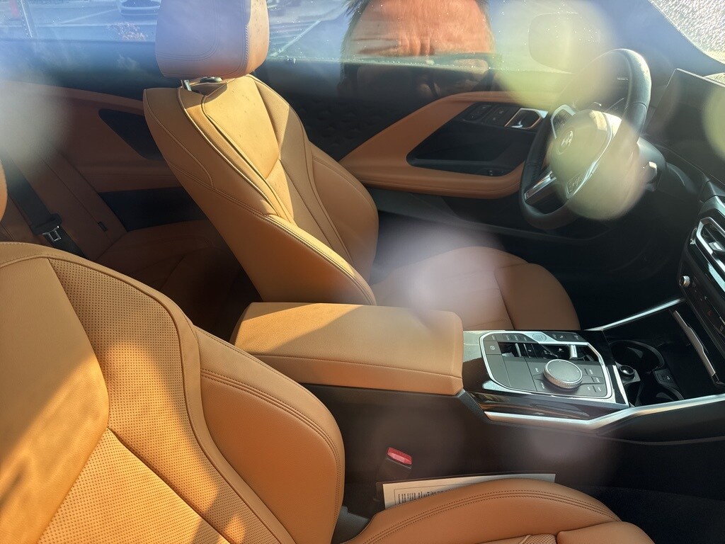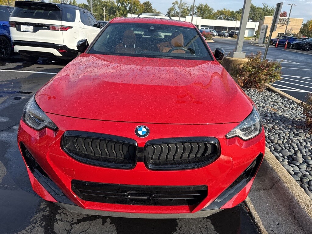 This 2 Series is well equipped with Connected Package Pro, Premium Package (Adaptive Full LED Lights, Automatic High Beams, Heated Front Seats, Heated Steering Wheel, Live Cockpit Pro, and Universal Garage-Door Opener), Shadowline Package (Extended Shadowline Trim, M Shadowline Lights, and M Sport Brakes w/Red Calipers), 10 Speakers, 4-Wheel Disc Brakes, ABS brakes, Adaptive suspension, Air Conditioning, Alloy wheels, AM/FM radio: SiriusXM, Apple CarPlay & Android Auto Compatibility, Auto-dimming door mirrors, Auto-dimming Rear-View mirror, Automatic temperature control, BMW Assist eCall, BMW TeleServices, Brake assist, Bumpers: body-color, ConnectedDrive Services, Delay-off headlights, Driver door bin, Driver vanity mirror, Dual front impact airbags, Dual front side impact airbags, Electronic Stability Control, Emergency communication system: BMW Assist eCall, Exterior Parking Camera Rear, Four wheel independent suspension, Front anti-roll bar, Front Bucket Seats, Front Center Armrest, Front dual zone A/C, Front reading lights, Front Sport Seats, Fully automatic headlights, harman/kardon Surround Sound System, Heated door mirrors, Hi-Fi Sound System, Illuminated entry, Knee airbag, Leather Shift Knob, Low tire pressure warning, Memory seat, Navigation, Navigation System, Occupant sensing airbag, Outside temperature display, Overhead airbag, Panic alarm, Passenger door bin, Passenger vanity mirror, Perforated Sensatec Upholstery, Power door mirrors, Power driver seat, Power Front Seats, Power moonroof, Power passenger seat, Power steering, Power windows, Radio data system, Radio: AM/FM Audio System, Rain sensing wipers, Rear air conditioning, Rear anti-roll bar, Rear window defroster, Remote Engine Start, Remote keyless entry, Security system, SiriusXM Satellite Radio, Speed control, Speed-sensing steering, Speed-Sensitive Wipers, Split folding rear seat, Spoiler, Sport steering wheel, Steering wheel mounted audio controls, Tachometer, Telescoping steering wheel, Tilt steering wheel, Traction control, Trip computer, Turn signal indicator mirrors, Variably intermittent wipers, Wheels: 19" x 8 M Double-Spoke Bi-Color, Wheels: 19" x 8 M Double-Spoke Jet Black, Widescreen Display, and Wireless Device Charging.