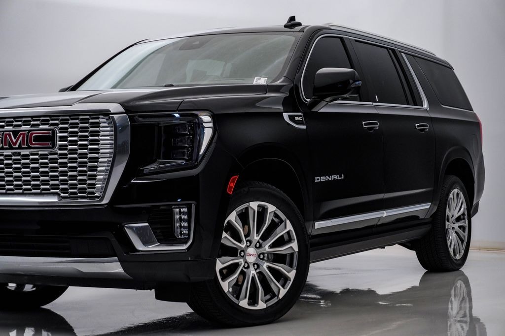This Yukon XL is well equipped with Advanced Security Package (Glass Breakage Sensor, Theft-Deterrent Alarm System, Vehicle Inclination Sensor, and Vehicle Interior Movement Sensor), Advanced Technology Package (Enhanced Automatic Parking Assist, Inside Rearview Auto-Dimming Rear Camera Mirror, Rear Camera Mirror Washer, and Reverse Automatic Braking), Max Trailering Package, Premium Capability Package w/Active Response 4WD (Air Ride Adaptive Suspension and Electronic Limited Slip Differential (eLSD)), 4WD, 15" Diagonal Multi-Color Head-Up Display, 2 Presets For Outside Rearview Mirrors, 3 Years of GMC Connected Services, 3 Years of OnStar Safety & Security, 3.23 Rear Axle Ratio, 3rd Row 60/40 Power-Folding Split-Bench Seat, 3rd row seats: split-bench, 4-Wheel Disc Brakes, ABS brakes, Adaptive Cruise Control, Adaptive suspension, Air Conditioning, Alloy wheels, AM/FM radio: SiriusXM with 360L, AM/FM Stereo, Apple CarPlay/Android Auto, Auto High-beam Headlights, Auto-dimming door mirrors, Auto-dimming Rear-View mirror, Auto-leveling suspension, Automatic temperature control, Bodyside moldings, Brake assist, Bright Front & Rear Door Sill Plates, Bumpers: body-color, Chrome Door Handles w/Body-Color Strip, Compass, Delay-off headlights, Driver door bin, Driver vanity mirror, Dual Exhaust System, Dual front impact airbags, Dual front side impact airbags, Dual-Pane Panoramic Power Sunroof, Electronic Stability Control, Emergency communication system: OnStar and GMC connected services capable, Enhanced Automatic Emergency Braking, Extra Capacity Cooling System, Floor Console, Four wheel independent suspension, Front anti-roll bar, Front Bucket Seats, Front Center Armrest, Front dual zone A/C, Front fog lights, Front reading lights, Fully automatic headlights, Garage door transmitter, Hands-Free Power Programmable Rear Liftgate, HD Surround Vision, Heads-Up Display, Heated & Ventilated Driver & Front Passenger Seats, Heated 2nd Row Outboard Position Seats, Heated door mirrors, Heated Driver & Front Passenger Seats, Heated front seats, Heated rear seats, Heated Steering Wheel, Heated steering wheel, Hill Descent Control, Hitch Guidance w/Hitch View, Illuminated entry, Integrated Trailer Brake Controller, Lane Keep Assist w/Lane Departure Warning, Low tire pressure warning, Magnetic Ride Control Suspension, Memory seat, Navigation System, Occupant sensing airbag, Outside Heated Power-Adjustable Mirrors, Outside temperature display, Overhead airbag, Overhead console, Panic alarm, Passenger door bin, Passenger vanity mirror, Power door mirrors, Power driver seat, Power Liftgate, Power passenger seat, Power Release 2nd Row Bucket Seats, Power steering, Power Tilt & Telescopic Steering Column, Power windows, Power-Retractable Assist Steps, Rain sensing wipers, Rear air conditioning, Rear anti-roll bar, Rear Cross Traffic Alert, Rear Pedestrian Alert, Rear reading lights, Rear Seat Media System, Rear window defroster, Rear window wiper, Remote keyless entry, Roof rack: rails only, Safety Alert Seat, Security system,