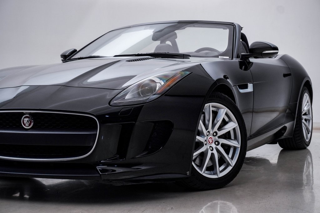 This F-TYPE is well equipped with 12 Speakers, 14-Way Sport-Style Front Seats, 4-Wheel Disc Brakes, ABS brakes, Air Conditioning, Alloy wheels, AM/FM radio: SiriusXM, Auto High-beam Headlights, Auto tilt-away steering wheel, Auto-dimming Rear-View mirror, Automatic temperature control, Brake assist, Bumpers: body-color, Convertible roof lining, Delay-off headlights, Driver door bin, Driver vanity mirror, Dual front impact airbags, Dual front side impact airbags, DVD-Audio, Electronic Stability Control, Emergency communication system: InControl Protect, Four wheel independent suspension, Front anti-roll bar, Front Bucket Seats, Front Center Armrest, Front reading lights, Fully automatic headlights, Glass rear window, Headlight cleaning, Heated door mirrors, High intensity discharge headlights: Bi-xenon, Illuminated entry, Integrated roll-over protection, Leather & Suedecloth Seating Surfaces, Leather Shift Knob, Low tire pressure warning, Memory seat, Navigation System, Occupant sensing airbag, Outside temperature display, Overhead console, Panic alarm, Passenger door bin, Passenger vanity mirror, Power convertible roof, Power door mirrors, Power driver seat, Power passenger seat, Power steering, Power windows, Radio data system, Radio: Meridian 770W Audio System w/12 Speakers, Rain sensing wipers, Rear anti-roll bar, Rear fog lights, Rear window defroster, Remote CD player, Remote keyless entry, Security system, Speed control, Speed-sensing steering, Spoiler, Steering wheel memory, Steering wheel mounted audio controls, Tachometer, Telescoping steering wheel, Tilt steering wheel, Traction control, Trip computer, Turn signal indicator mirrors, Variably intermittent wipers, and Wheels: 18" Vela-Style 10-Spoke Alloy.