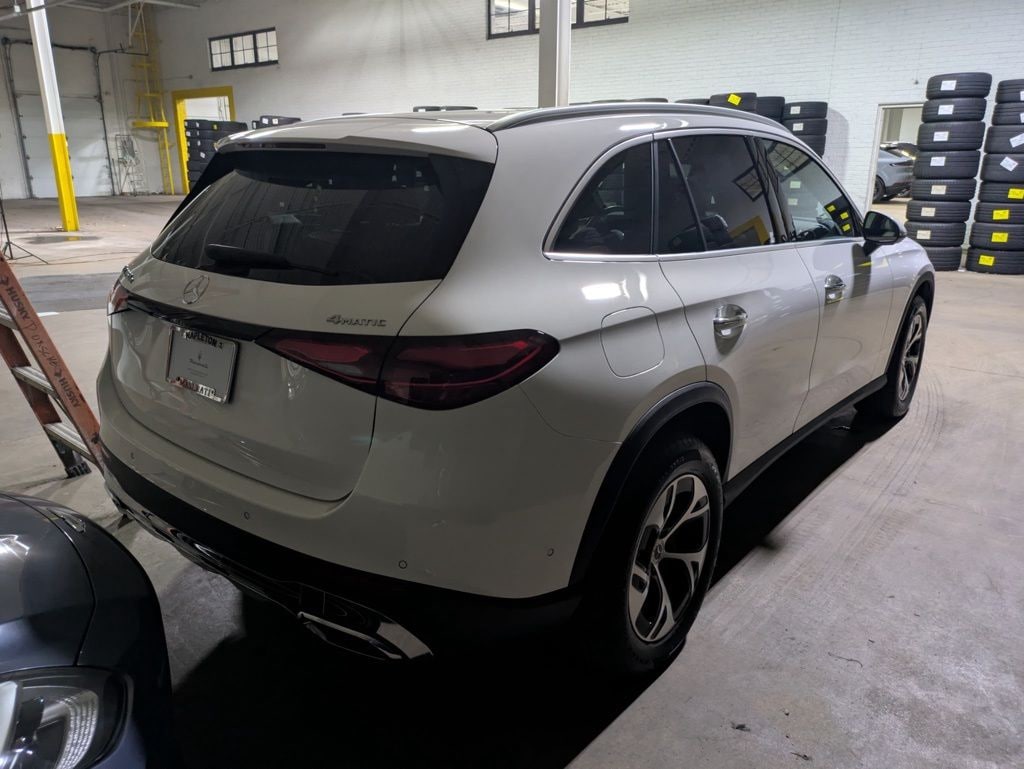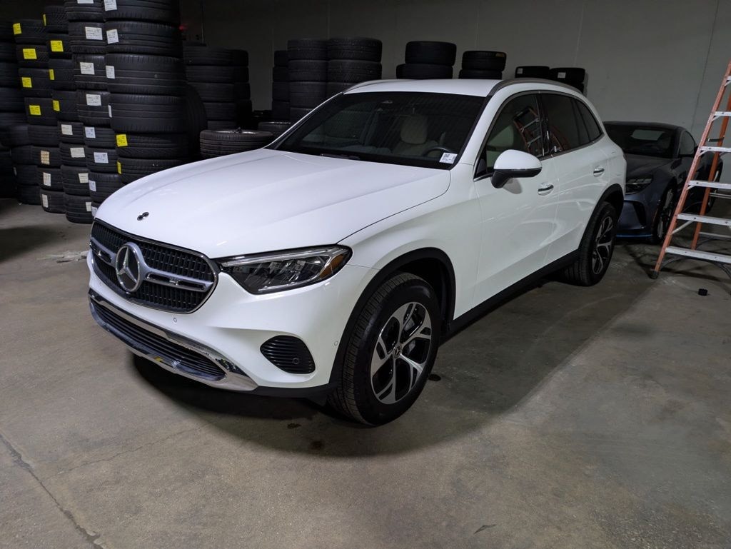 This GLC is well equipped with I4, 11.9" Center Touchscreen Display, 16-Way Power Front Seats with Memory/Lumbar/Thigh Extension, 3 USB C-Ports, 4-Wheel Disc Brakes, 8 Speakers, ABS brakes, Air Conditioning, Alloy wheels, AM/FM radio: SiriusXM, Apple CarPlay®/Android Auto®, Auto High-beam Headlights, Auto tilt-away steering wheel, Auto-dimming Rear-View mirror, Auto-leveling suspension, Automatic temperature control, Brake assist, Bumpers: body-color, Child-Seat-Sensing Airbag, Compass, Delay-off headlights, Driver door bin, Driver vanity mirror, Dual front impact airbags, Dual front side impact airbags, Electronic Stability Control, Emergency communication system: eCall Emergency System, Exterior Parking Camera Rear, Four wheel independent suspension, Front anti-roll bar, Front Bucket Seats, Front Center Armrest, Front dual zone A/C, Front reading lights, Fully automatic headlights, Garage door transmitter: HomeLink, Genuine wood dashboard insert, HD Radio, Head restraints memory, Heated door mirrors, Heated Front Bucket Seats, Heated front seats, Illuminated entry, Inductive Wireless Charging, Knee airbag, Leather steering wheel, Low tire pressure warning, MB-Tex Upholstery, Memory seat, Navigation System, Occupant sensing airbag, Outside temperature display, Overhead airbag, Overhead console, Panic alarm, Passenger door bin, Passenger vanity mirror, Power adjustable front head restraints, Power door mirrors, Power driver seat, Power Liftgate, Power passenger seat, Power steering, Power windows, Premium audio system: MBUX, Radio data system, Radio: 3rd Generation MBUX, Rain sensing wipers, Rear anti-roll bar, Rear fog lights, Rear reading lights, Rear seat center armrest, Rear window defroster, Rear window wiper, Remote keyless entry, Security system, SiriusXM Satellite Radio, Speed control, Speed-sensing steering, Split folding rear seat, Spoiler, Steering wheel memory, Steering wheel mounted audio controls, Tachometer, Telescoping steering wheel, Tilt steering wheel, Traction control, Trip computer, Turn signal indicator mirrors, Variably intermittent wipers, Wheels: 19" AMG® 5-Spoke with Black Accents, Wireless Android Auto®, and Wireless Apple CarPlay®.
